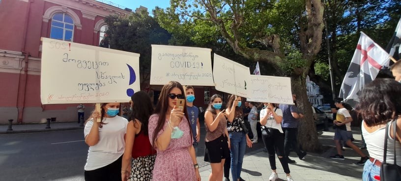 ''მოგვეცით სწავლის უფლება'', ''გაითვალისწინეთ covid-19'', ''გთხოვთ დაუშვათ მეორადი ჩარიცხვები'', - აღნიშნული შინაარსის ტრანსპარანტები მიივიდნენ უმაღლეს სასწავლებელს მიღმა დარჩენილი მოქალაქეები აქციაზე.