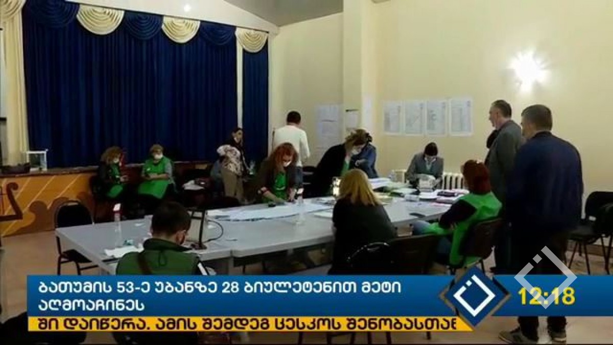 ხმაური იყო ბათუმის 53-ე საარჩევნო უბანზე. აქ ამ დრომდე არ დაწერილა შემაჯამებელი ოქმი.კომისიის წევრები, მთელი ღამის განმავლობაში მუშაობდნენ და ბიულეტინის რამდენჯერმე გადათვლა მოუწიათ. 53-ე საარჩევნო უბანზე აღმოჩნდა, რომ მისულ ამომრჩეველთა რაოდენობასთან შედარებით 28 ბიულეტენით