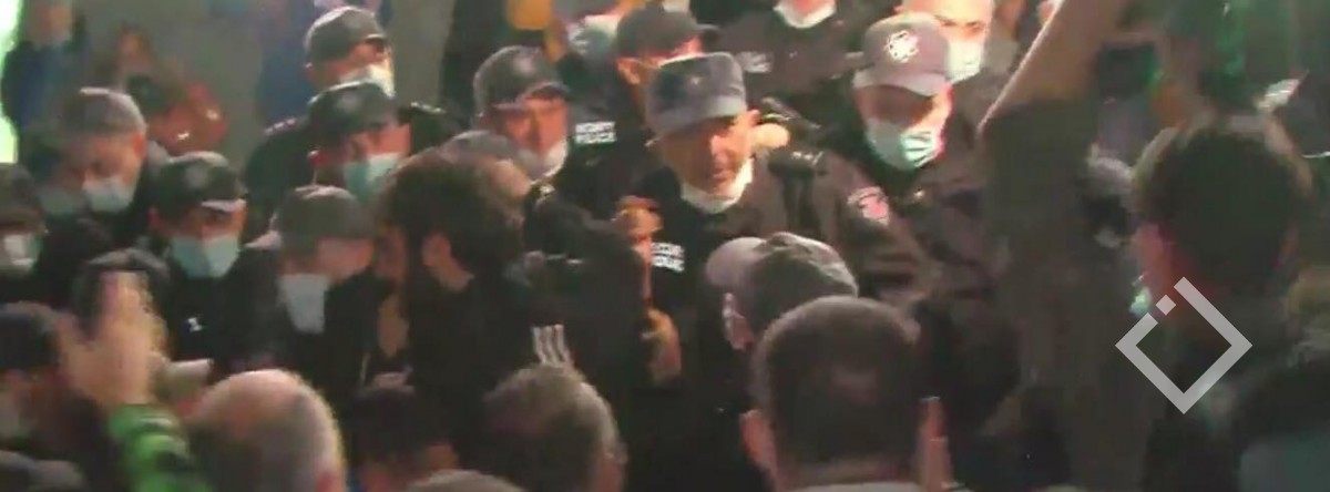 მიმდებარე ტერიტორიაზე სიტუაცია დაიძაბა, აქციის მონაწილეებსა და სამართალდამცავებს შორის ფიზიკური დაპირისპირებაა, აქციის მონაწილეები პოლიციის კორდონის გარღვევას და შენობაში შესვლას ცდილობენ.