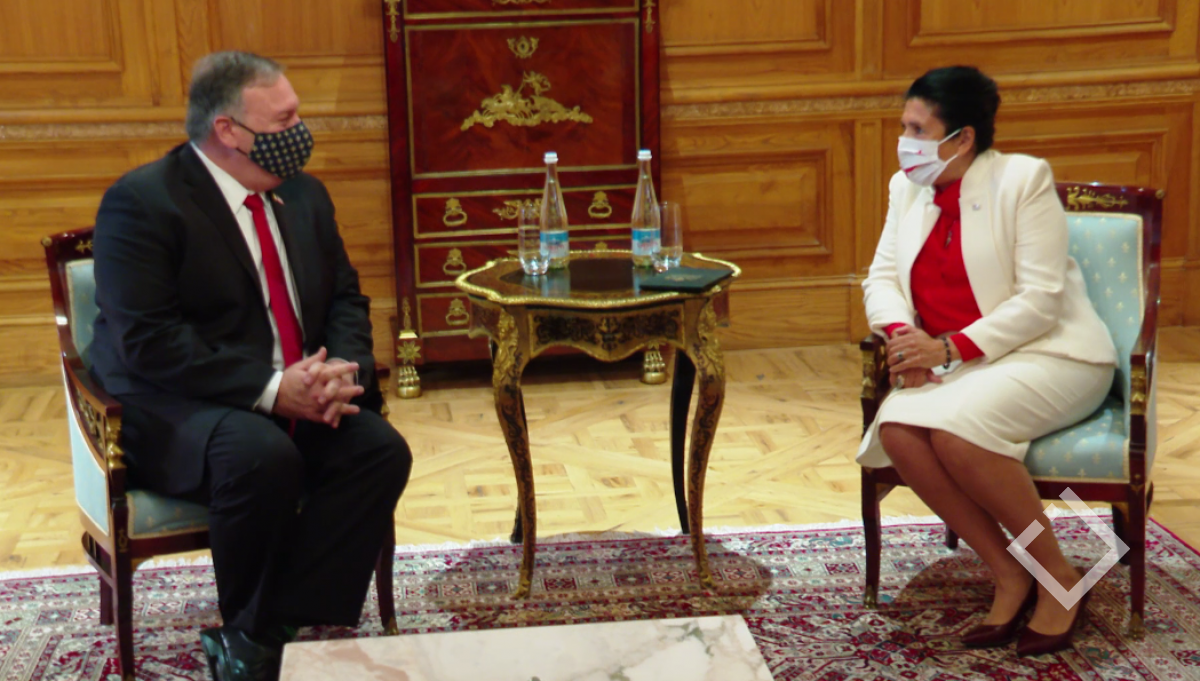 ''სახელმწიფო მდივან პომპეოსთვის სასიამოვნო იყო პრეზიდენტ ზურაბიშვილთან შეხვედრა ორბელიანის ისტორიულ სასახლეში, სადაც ადრე აშშ-ის საელჩო იყო განთავსებული. შეხვედრაზე სახელმწიფო მდივანმა შეერთებული შტატების სახელით საქართველოს სუვერენიტეტისა და ტერიტორიული მთლიანობისადმი ერთგულება დაადასტურა და გლობალური ტერორიზმის წინააღმდეგ ბრძოლაში შეტანილი მნიშვნელოვანი წვლილისთვის ქვეყნის მიმართ პატივისცემა გამოხატა'' - წერია გავრცელებულ ინფორმაციაში.