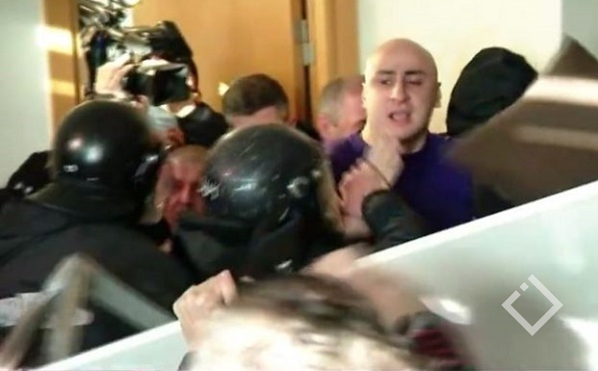 ''ერთიანი ნაციონალური მოძრაობის'' ლიდერი ნიკა მელია პოლიციამ დაახლოებით ერთი საათის წინ დააკავა. ის შენობიდან სპეციალური დანიშნულების რაზმის წევრებმა გამოიყვანეს და ტერიტორია სპეციალური ავტომობილით დატოვეს.