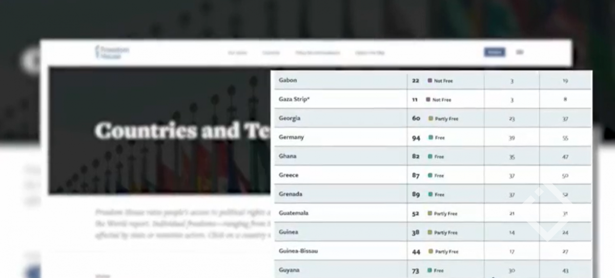 „ფრიდომ ჰაუსის“ ანგარიშით, საქართველოს 100-დან 60 ქულა აქვს და ნაწილობრივ თავისუფალ ქვეყნად რჩება. რაც ნიშნავს, რომ რეიტინგი გაუარესდა. პოლიტიკური უფლებები 40-დან 23 ქულითაა შეფასებული, ხოლო სამოქალაქო თავისუფლება - 60-დან 37-ით. ორგანიზაცია წერს, რომ მესამე ვადით გაიმარჯვა „ქართულმა ოცნებამ“, იყო ხმების მოსყიდვა, ძალადობის შემთხვევები, ხმების დათვლისას შეცდომები, რამაც ოპოზიციას ბოიკოტისკენ უბიძგა.