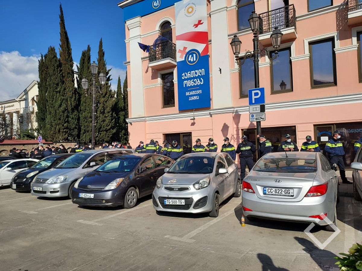 ისინი საპროტესტო აქციას მართავდნენ, ოფისთან მიიტანეს მავთულხლართები და ბანერები, წარწერით: „აფხაზეთი საქართველოა“ , „რუსული ოცნება“.