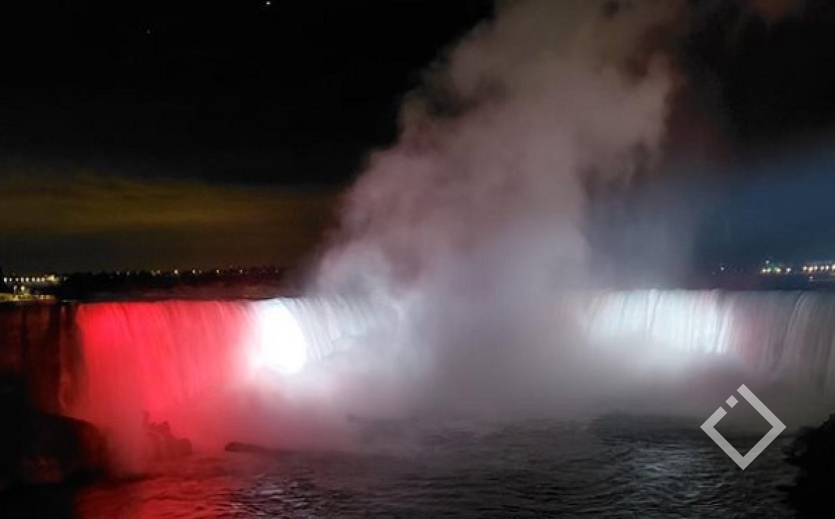ნიაგარას ჩანჩქერი საქართველოს დროშის ფერებით განათდა