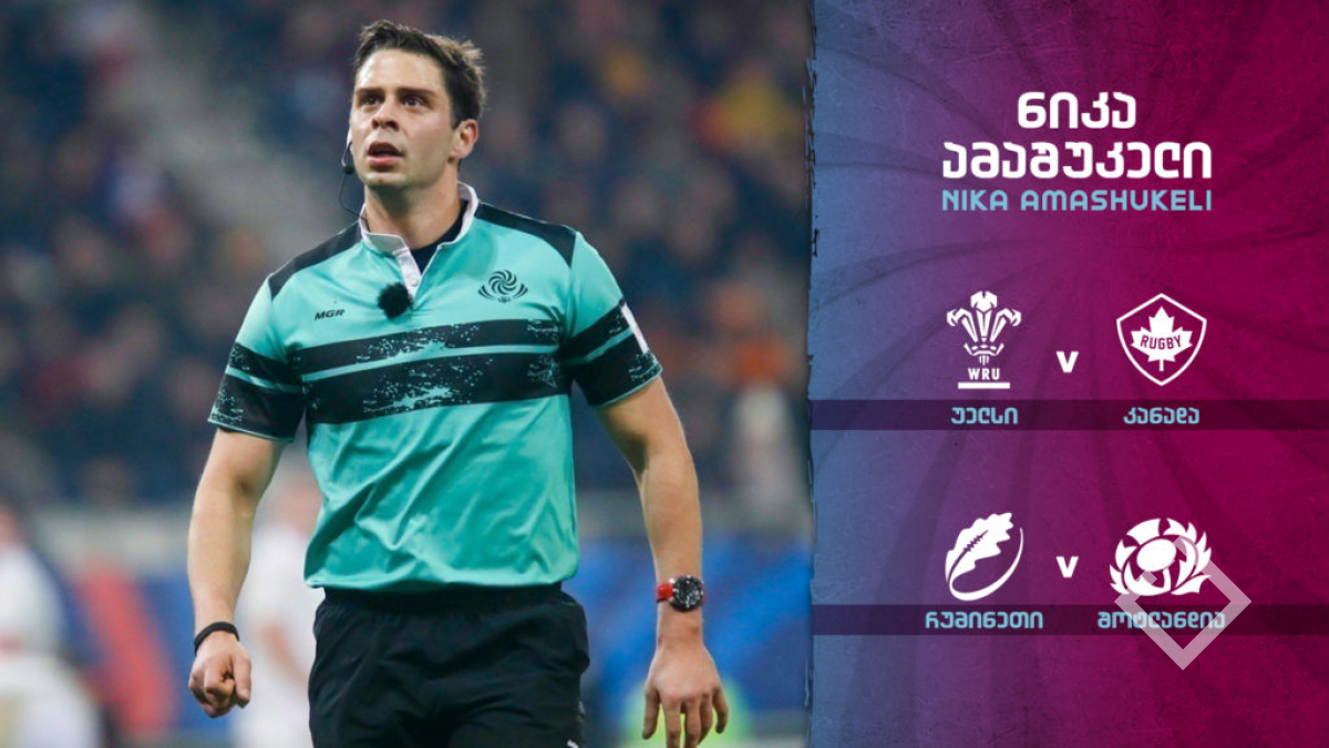 ქართველი რეფერი ნიკა ამაშუკელი, მსოფლიო რაგბის ისტორიაში პირველი ტიერ2 ქვეყნის წარმომადგენელია, რომელიც ტიერ1 ქვეყნის ნაკრებების მატჩს იმსაჯებს.