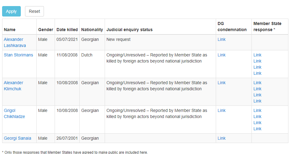მონაცემები ორგანიზაციის ვებგვერდზეა ასახული, სადაც აღნიშნულია, რომ ლექსო ლაშქარავა მოკლულია 5 ივლისს საქართველოში.