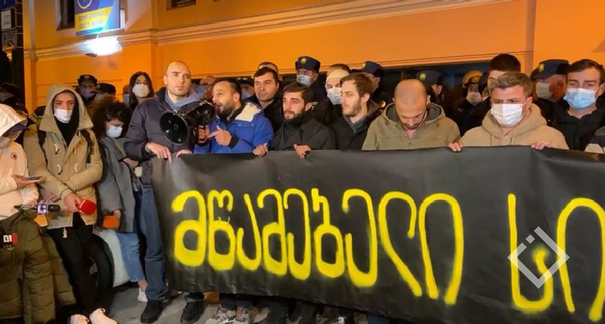სამოქალაქო აქტივისტები "ქართული ოცნების“ ოფისთან თბილისის მეტროში გადაღებულ ვიდეომასალასთან დაკავშირებით აქციას მართავენ და პოლიციელის მიერ ახალგაზრდა მამაკაცის ცემის ფაქტს აპროტესტებენ.