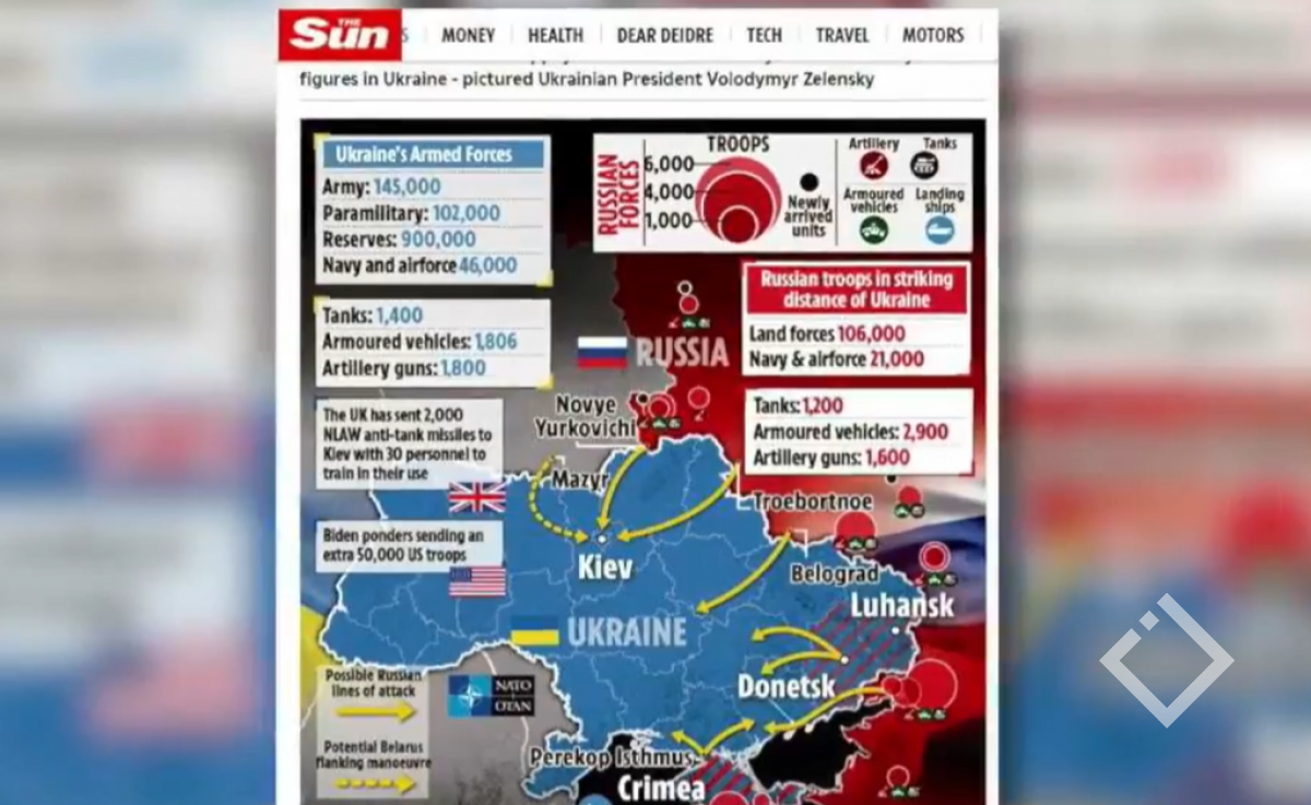 ბრიტანულმა გამოცემამ რუსეთის შესაძლო თავდასხმის რუკაც გამოაქვეყნა და ცალკე აღნიშნა, რომ რუსული მხარე თავდასხმისთვის უკრაინის ტერიტორიაზე ტემპერატურის მკვეთრ დაცემას დაელოდება, რადგან დაბალი ტემპერატურა მიწას გაყინავს და ტანკებს შეტევის დაწყების საშუალებას მისცემს.