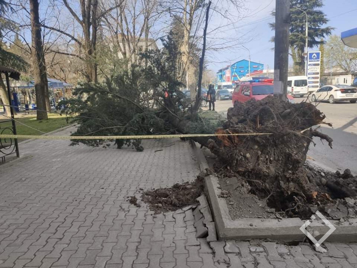 კიდევ ერთი ინციდენტი მოხდა აღმაშენებლის გამზირზე. ძლიერი ქარის შედეგად მოგლეჯილი ხე ავტომობილს დაეცა. ავტომანქანაში მყოფი ორი ადამიანი შემთხვევას უვნებლად გადაურჩა. ქარმა რამდენიმე ქუჩაზე ნარგავები მოგლიჯა. მათ შორის ასწლოვანი ხეები.