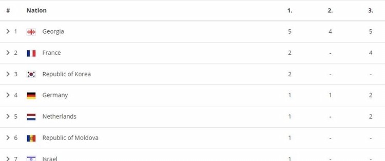 საქართველოს ნაკრების შემდეგ გუნდერ ჩათვლაში მეორე ადგილზე საფრანგეთი გავიდა, ხოლო მესამე ადგილი სამხრეთ კორეამ დაიკავა.